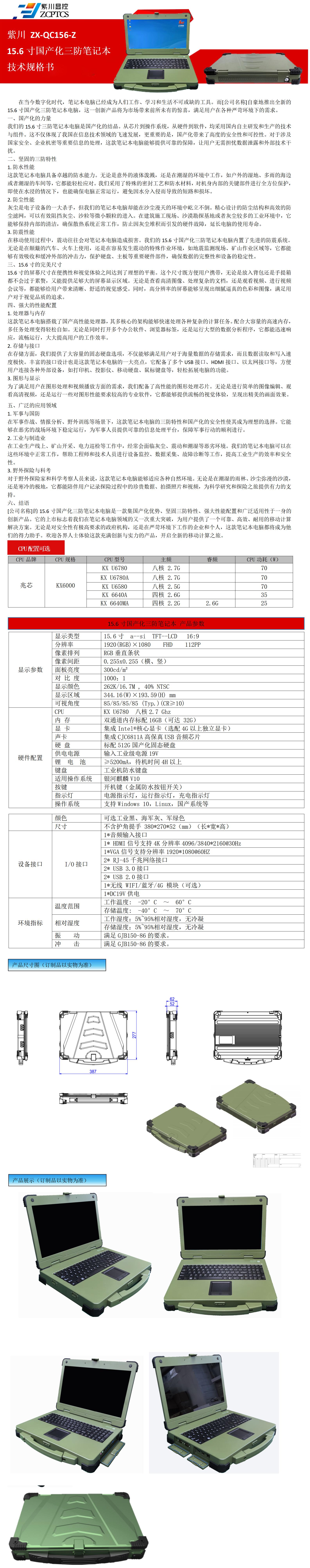《紫川显控15.6寸国产化三防笔记本电脑上市:卓
