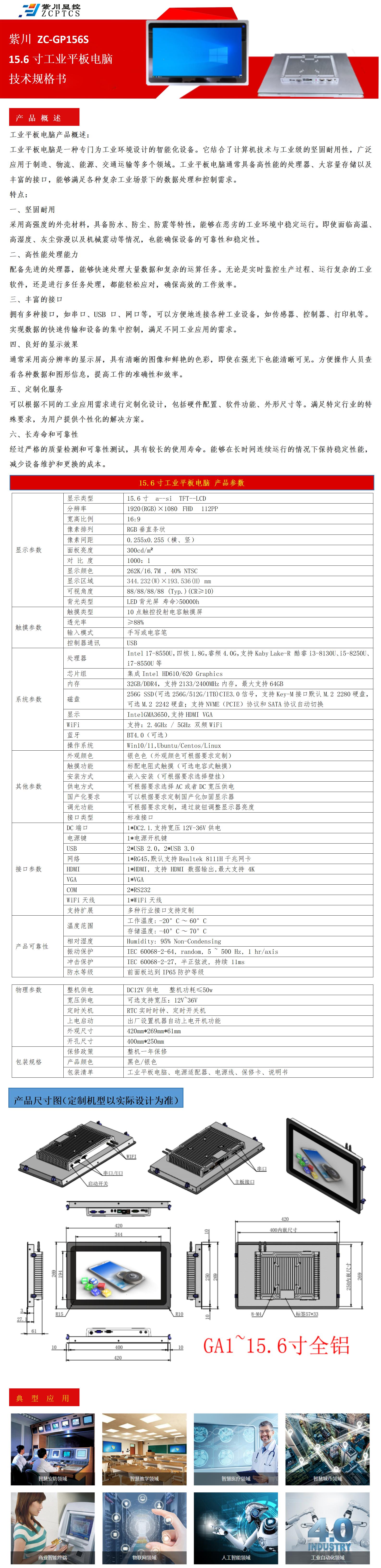 15.6寸工业一体机,嵌入式安装、工业平板电脑