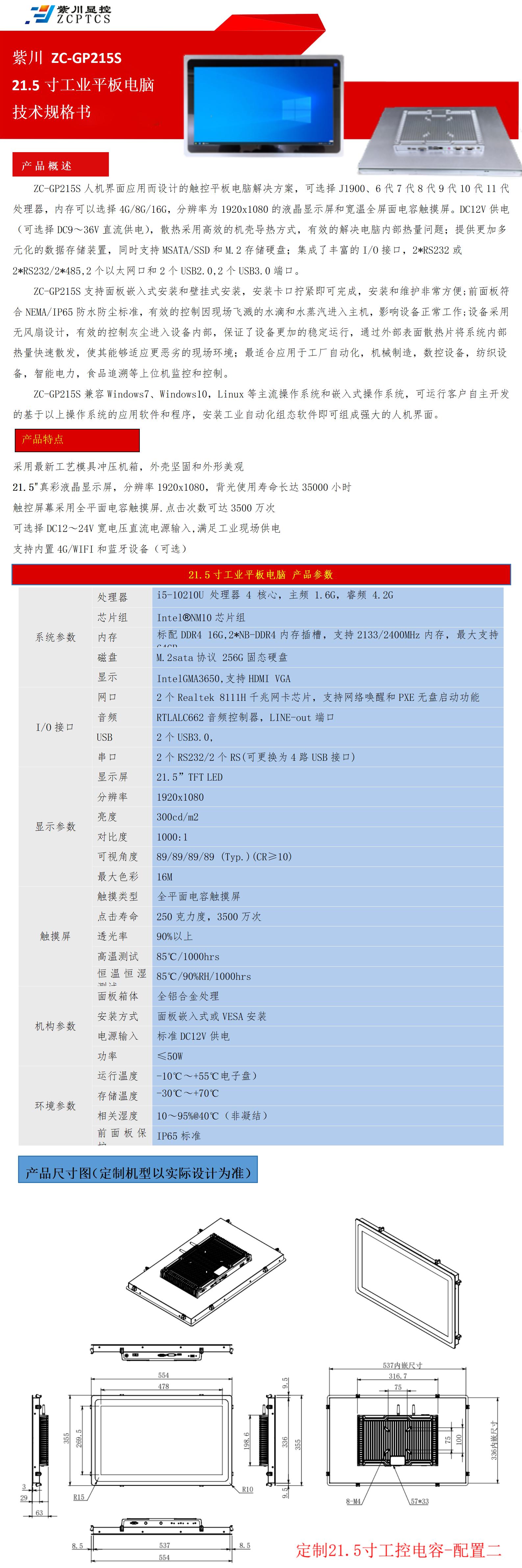 人机界面应用而设计的触控平板电脑解决方案,可选择J1900、6代7代8代9代10代11代处理器,内存可以选择4G/8G/16G,分辨率为1280x800的液晶显示屏和宽温全屏面电容触摸屏。DC12V供电(可选择DC9~